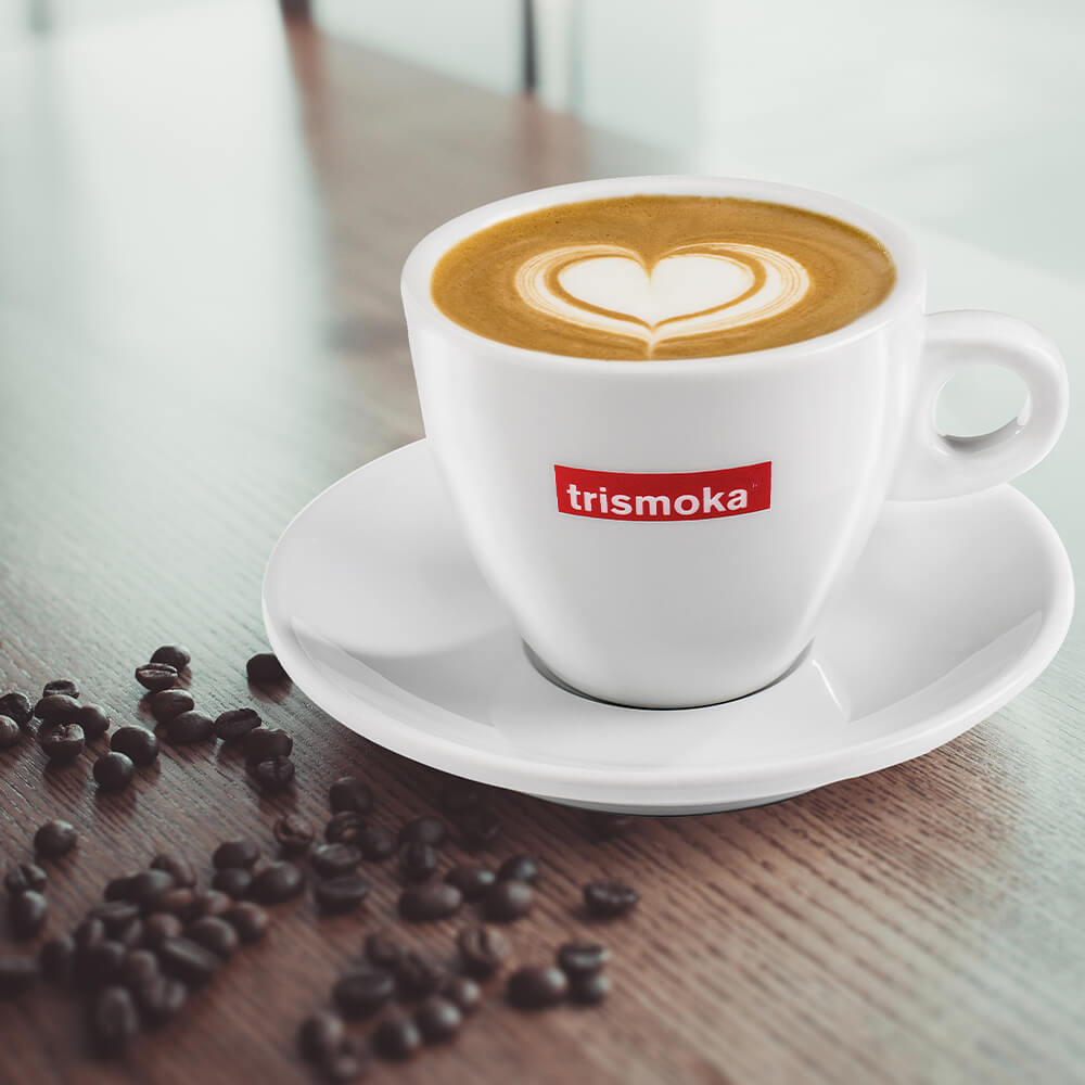 Il caffè (o il cappuccio) gustato mentre si corre verso l'ufficio, o mentre si passeggia tranquillamente per la città. Un'abitudine nuova, che conserva tutta la bontà del tradizionale caffè gustato seduti al tavolino di un bar. Un bar Trismoka, ovviamente.